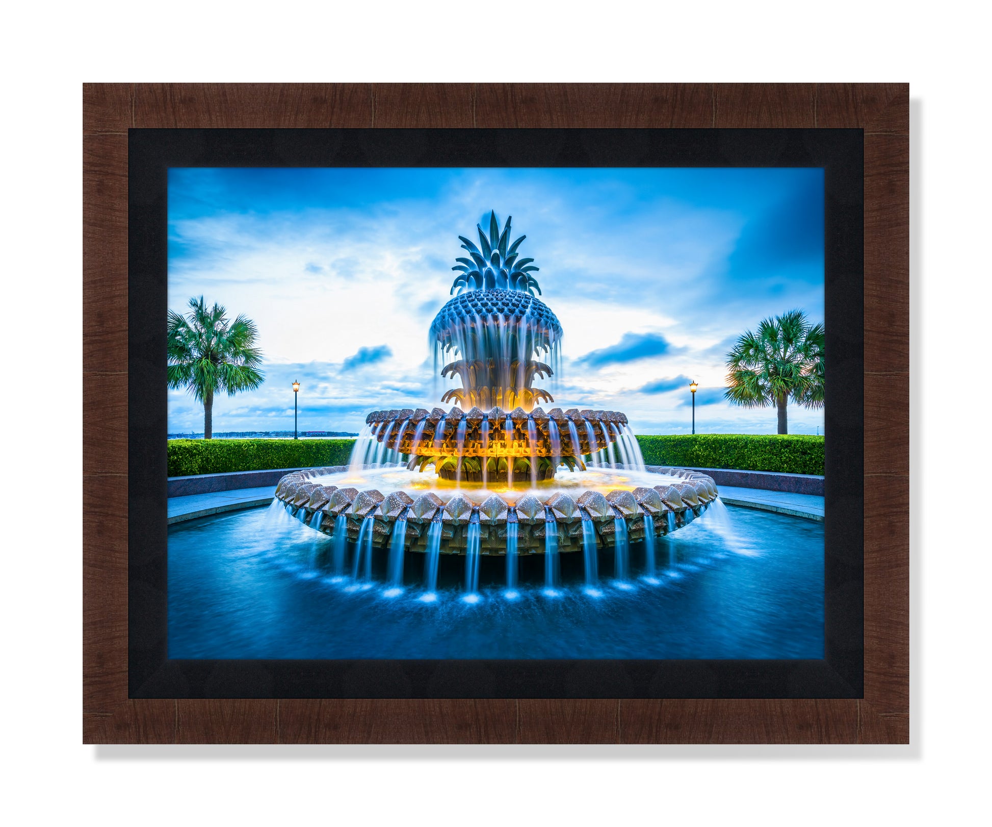 Indulge in the luxury of "Waterfront Hospitality" - a captivating fine art photograph capturing the pineapple fountain at Waterfront Park in Downtown Charleston. With a silky texture to the water, this exclusive piece was shot at dawn using a long exposure technique. Elevate your space with this elegant piece.